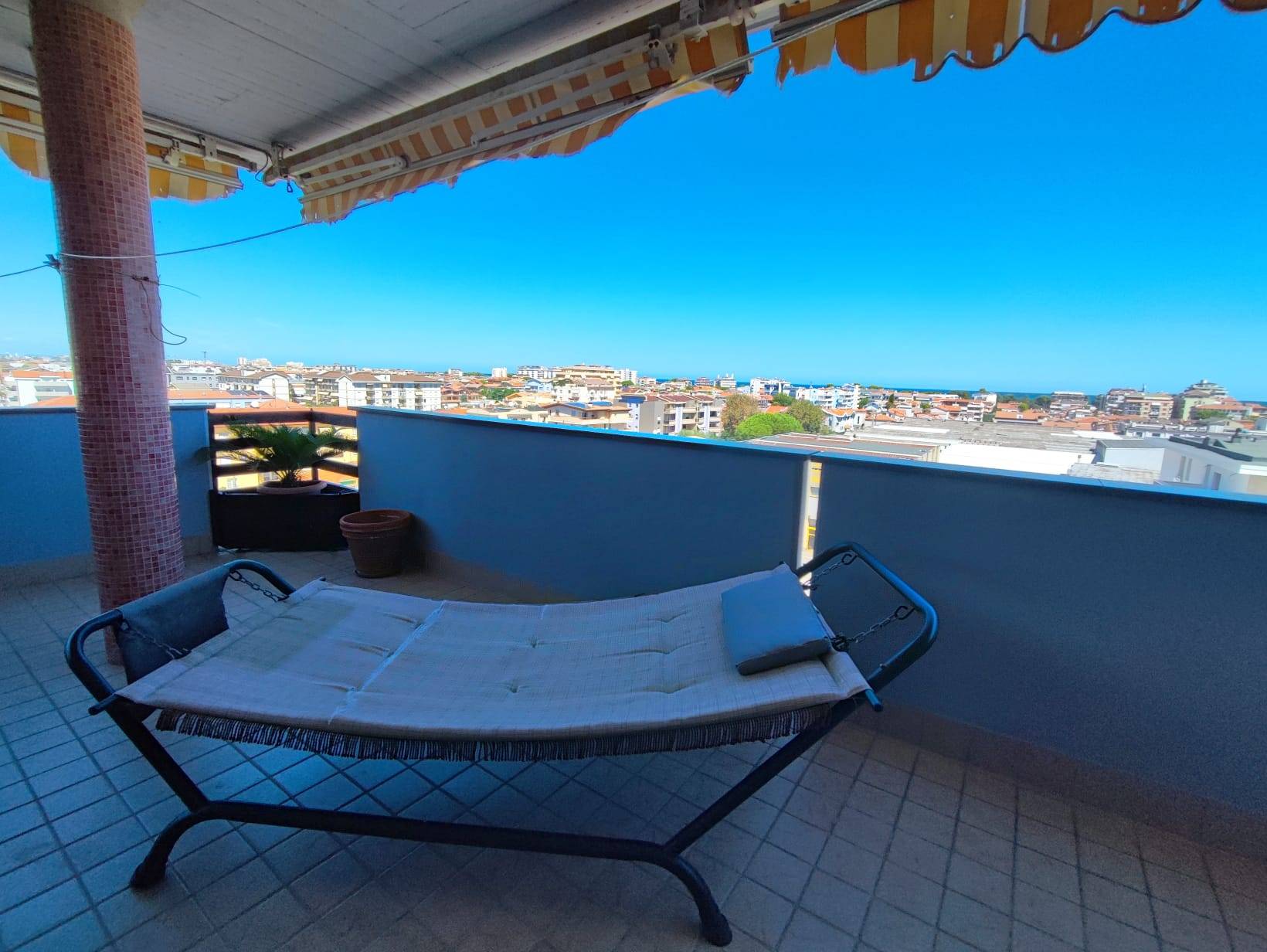RIF.1619 - Montesilvano Santa Filomena, in zona ottimamente servita, proponiamo in vendita elegante attico e superattico con grande terrazzo vista mare. L'immobile si trova al 5° e 6° piano di un edificio del 2006, dotato di ascensore, senza barriere architettoniche e servizio di videosorveglianza.