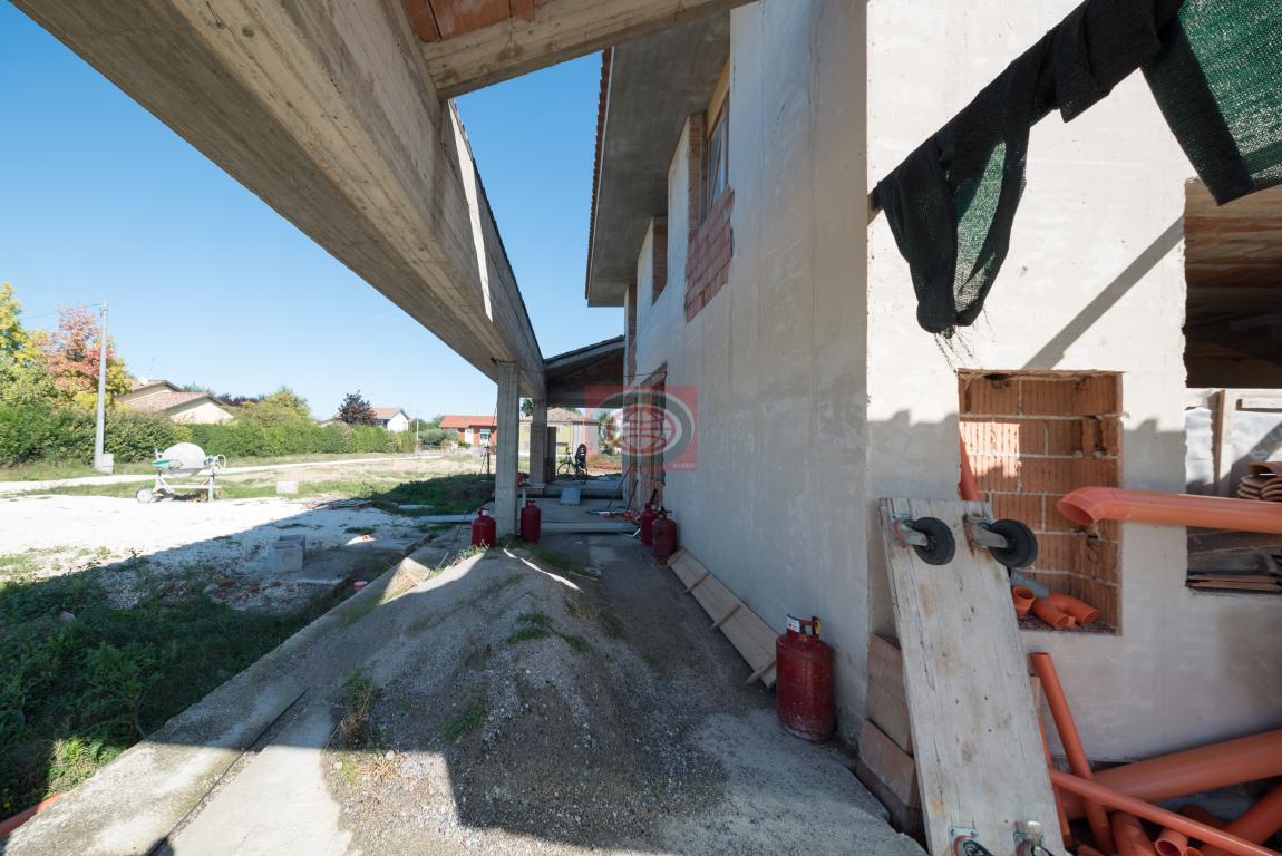 ATTUALMENTE il progetto prevede la seguente distribuzione: PIANO TERRA: ingresso INDIPENDENTE ( 20 mq. ) , garage doppio di 34 mq., portici ( 13 mq ) e GIARDINO PRIVATO ANGOLARE; PIANO PRIMO: zona giorno ( unico ambiente o divisa a seconda delle preferenze ), 2 camere da letto matrimoniali ( 16+15 mq. ) oppure 3 a seconda di come si distribuisce la zona giorno, bagno MOLTO GRANDE ( mq. 8 ) con possibilità di ricavarne un secondo ( al piano primo o al piano terra ). Possibilità di variare il progetto attuale a seconda delle esigenze. - N.B.: il prezzo indicato è riferito all'acquisto nello STATO GREZZO ATTUALE. - N.B.: per poter ottenere l'abitabilità dovranno essere ultimati i lavori e la proprietà attuale dovrà demolire un immobile collabente nelle vicinanze di cui è stata sfruttata l'edificabilità ( demolizione già in corso d'opera ). - N.B.: Le presenti informazioni non costituiscono elemento contrattuale..