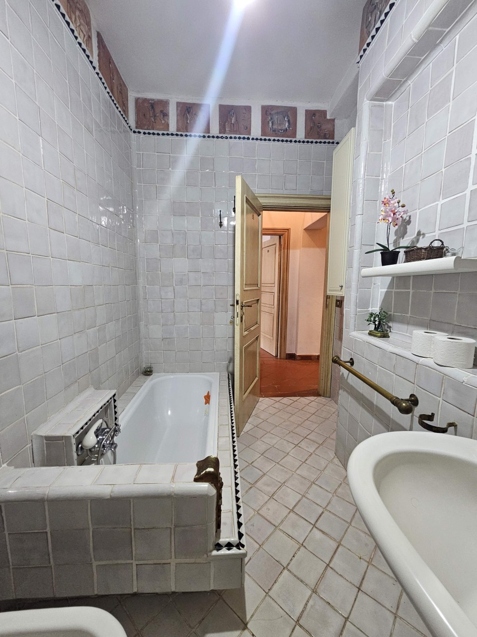 Il Fabbricato principale è dislocato su due livelli dove al piano primo troviamo la civile abitazione suddiviso in 7 vani oltre doppi servizi, ripostiglio e tre disimpegni il tutto correlato da una terrazza sui lati sud ed ovest della proprietà ed un monumentale camino nella zona pranzo, al piano terra invece troviamo 3 unità immobiliare di cui un 5 vani con doppi servizi e disimpegno con portico esclusivo, un bilocale monopiano ed un bilocale su due livelli oltre ad una centrale termica posta con accesso sul lato nord del fabbricato ed una dispensa disimpegnata ubicata nel cuore della proprietà e con accesso tramite porta posta sul lato sud.