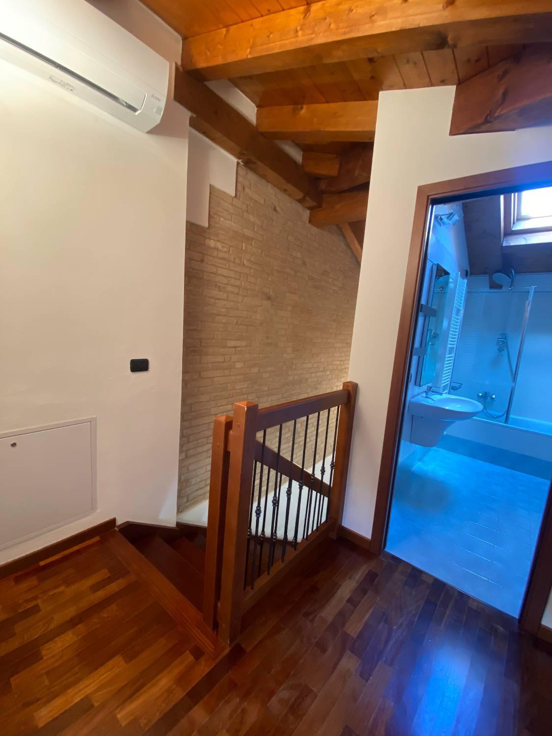Lâ??abitazione, dotata di un piccolo scoperto privato, si sviluppa su due livelli: al piano terra troviamo un  ampio e luminoso soggiorno, cucina abitabile completa di arredi nuovi su misura e un bagno di servizio. Al piano superiore , due spaziose camere matrimoniali, secondo bagno finestrato e comoda cabina armadio. La casa offre un'atmosfera calda e accogliente, grazie alla cura dei particolari e alle finiture di alto livello: serramenti in ciliegio, riscaldamento a pavimento, parquet nella zona notte e impianto di climatizzazione. Unâ??abitazione esclusiva, ideale per chi cerca comfort, privacy e stile nel cuore della città ..