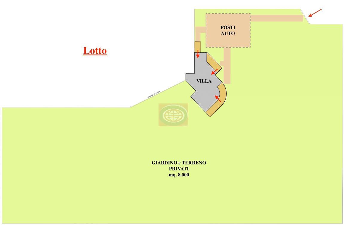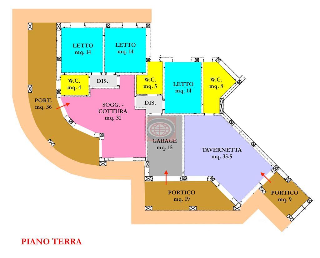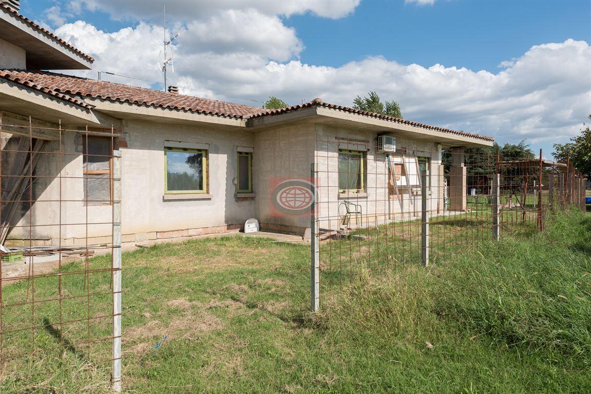 , tre camere da letto MATRIMONIALI, tre bagni, ampia TAVERNETTA al piano terra di oltre 35 mq. ( dove è possibile ricavare un "appartamentino" per genitori o un figlio che desideri la sua indipendenza ), garage, portici ( complessivi 64 mq. ), GIARDINO PRIVATO ANGOLARE ( in parte TERRENO AGRICOLO ) di circa 8.000 mq.. - LA SOLUZIONE E' OTTIMA ANCHE PER CHI DESIDERI REALIZZARE UN B&B, grazie agli ampi spazi interni, al numero di camere e bagni, e all' ampio parco con la possibilità di attrezzarlo con giochi per bambini, piscina, campi da gioco di vario tipo, area relax con lettini e ombrelloni, ecc... ). - N.B.: per poter ottenere l'abitabilità dovranno essere ultimati i lavori e la proprietà attuale dovrà demolire un immobile collabente nelle vicinanze di cui è stata sfruttata l'edificabilità ( demolizione già in corso d'opera ). - N.B.: Le presenti informazioni non costituiscono elemento contrattuale..
