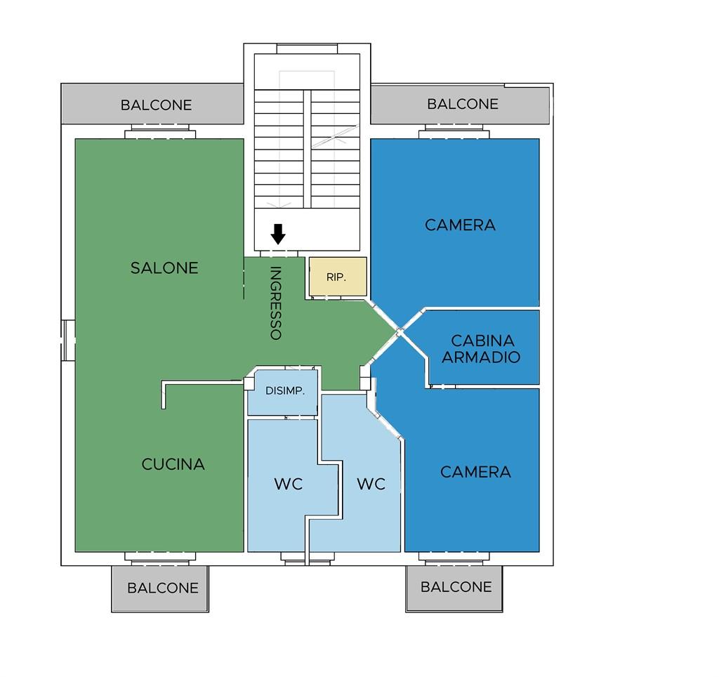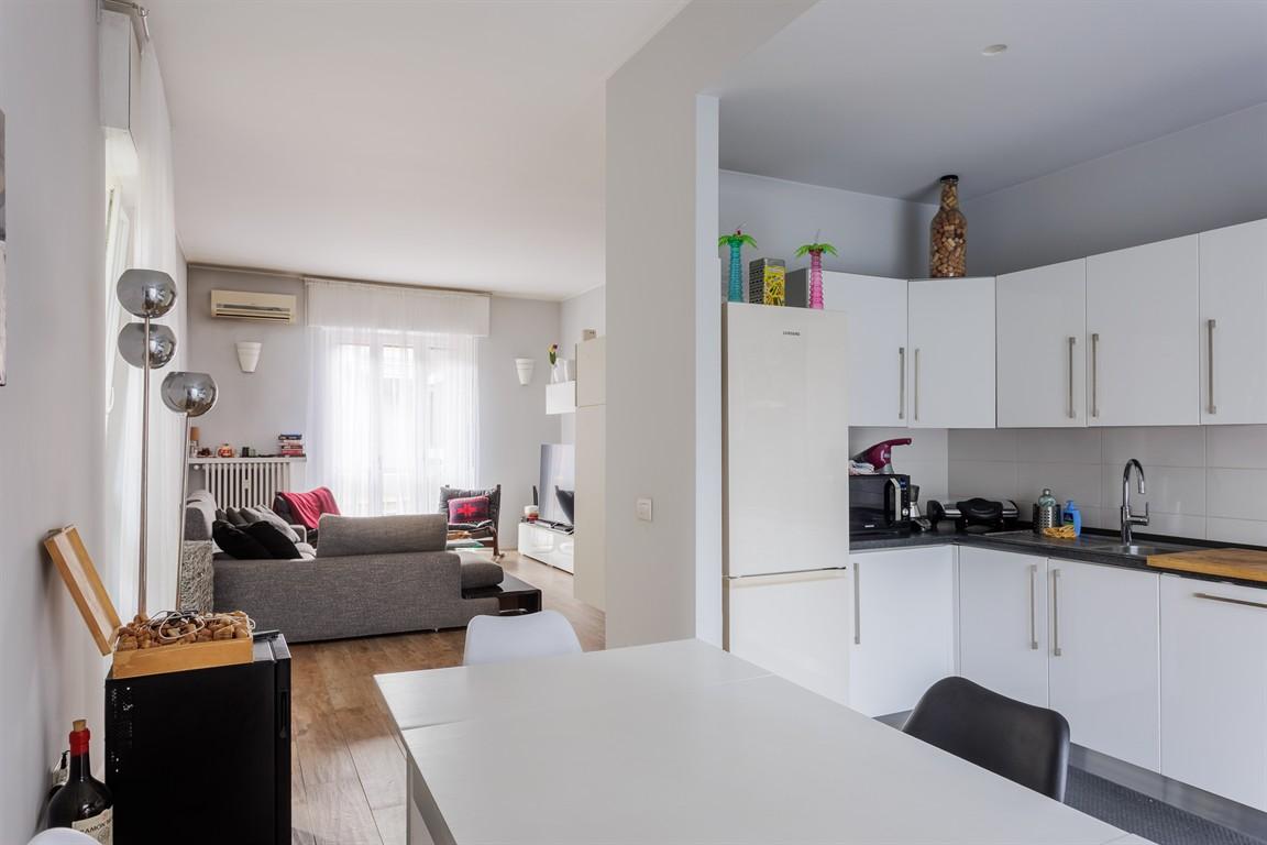 L'immobile si compone di: ingresso accogliente, luminoso salone, ampia cucina abitabile, disimpegno notte con due camere matrimoniali, di cui una con cabina armadio e bagno en suite finestrato, secondo bagno per gli ospiti, anch'esso finestrato, ripostiglio, quattro balconi e vano di cantina al piano interrato. L'appartamento gode di tripla esposizione solare (Est - Ovest - Nord), che garantisce un'eccellente luminosità durante tutta la giornata. Dotazioni e comfort: Ristrutturazione completa e recente con materiali di pregio Impianti elettrico e idraulico nuovi e certificati Aria condizionata con pompa di calore nel salone e in una delle camere Riscaldamento centralizzato con gestione autonoma dei consumi Soluzione ideale anche per investimento: è possibile ripristinare il secondo ingresso e frazionare l’unità in due appartamenti distinti. Libero al rogito – € 390.000 - Rif. 5456.