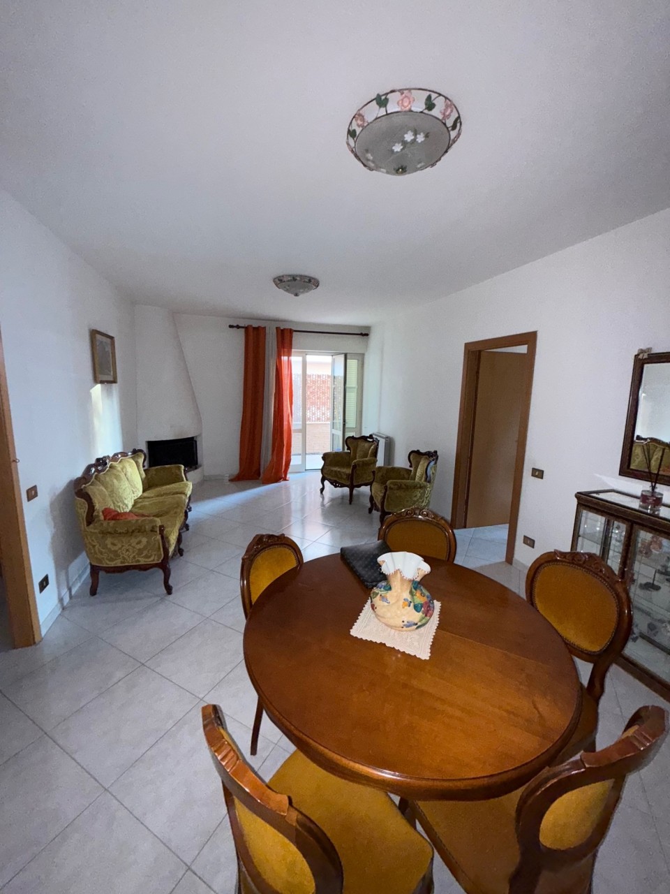 La sua metratura è di 112 mq meglio composti da: ingresso, ampio salone con camino e uscita sul balcone, cucina abitabile con balcone, tre camere da letto e due bagni.