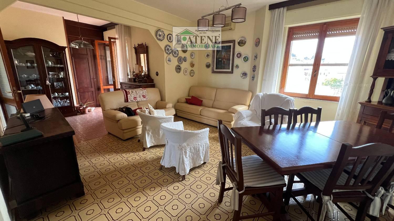 Caratterizzano l'immobile la posizione molto luminosa e soleggiata e l'ampia metratura interna. Si sviluppa su tre lati, ben arieggiato e con grandi spazi interni, composto da ingresso salone doppio, veranda adiacente con vista sulla basilica, cucina abitabile, altra sala con vista sul mare, tre camere da letto panoramiche, bagno, doppio servizio, corridoio, altra veranda chiusa e regolarmente condonata. Immediatamente abitabile e subito disponibile, ma con qualche modifica interna si può rendere ancora più confortevole e moderno e adattabile alle esigenze di chi lo abiterà . L'immobile si completa con un posto auto interno coperto in autorimessa per piccola utilitaria, moto e scooter. Dotato di riscaldamento e pompe di calore. Ape in fase di richiesta Richiesta Euro 450.000,00 PREZZO RIBASSATO Atene Immobiliare 070.814460.