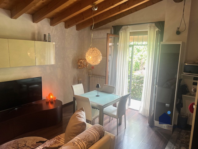 Grazioso monolocale con soppalco arredato al piano primo con travi a vista e balcone. Composto da zona giorno con angolo cottura e bagno finestrato con doccia. Piccolo e grazioso soppalco con letto matrimoniale e armadi fatti su misura. Termoautonomo.