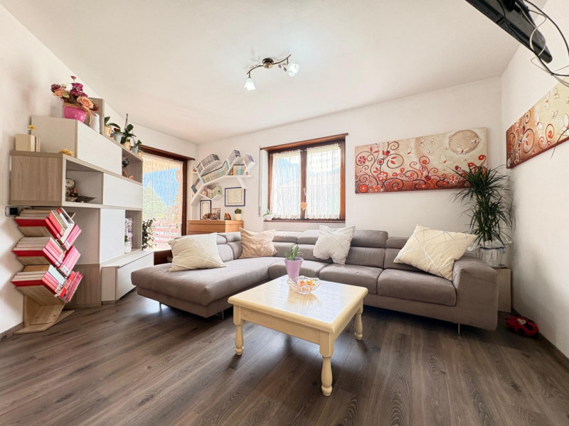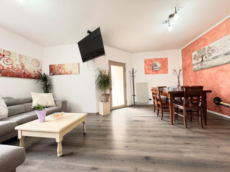 ingresso - soggiorno e terrazzo ad angolo di 18 mq. - cucina abitabile con affaccio su stessa terrazza - tre camere matrimoniali - terrazza - due bagni finestrati - ripostiglio - cantina - box auto di circa mq. 18 - giardino di mq. 55