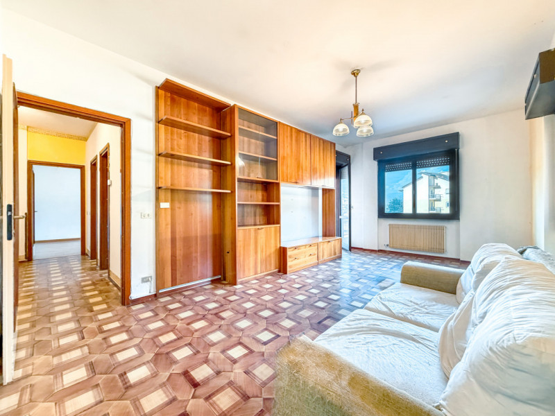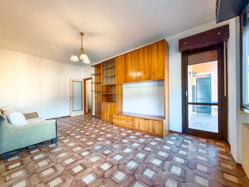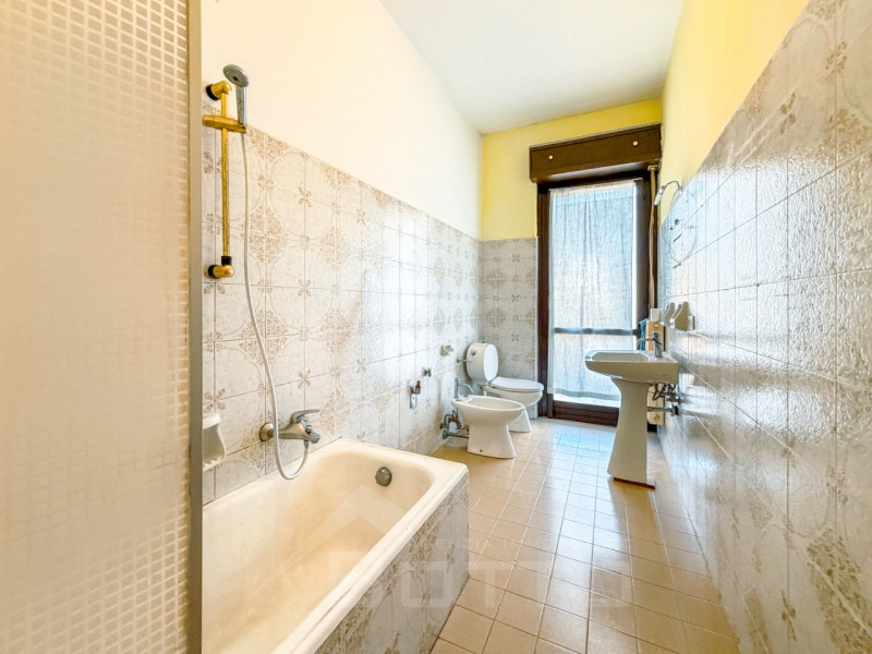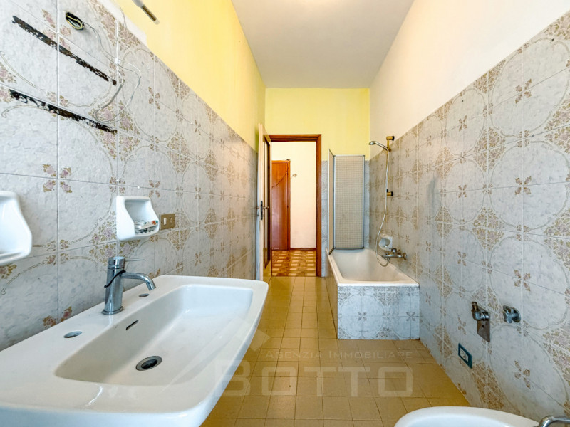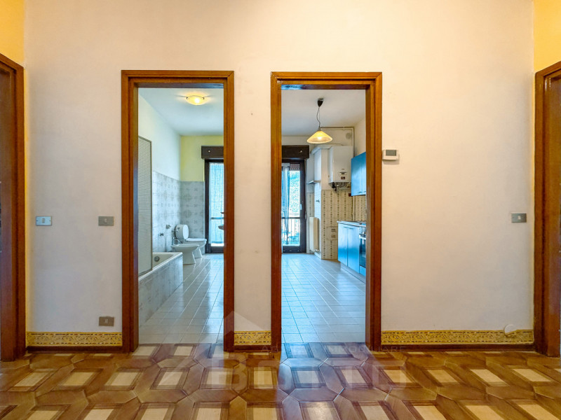 ingresso - soggiorno e terrazzo ad angolo di 18 mq. - cucina abitabile con affaccio su stessa terrazza - tre camere matrimoniali - terrazza - due bagni finestrati - ripostiglio - cantina - box auto di circa mq. 18 - giardino di mq. 55