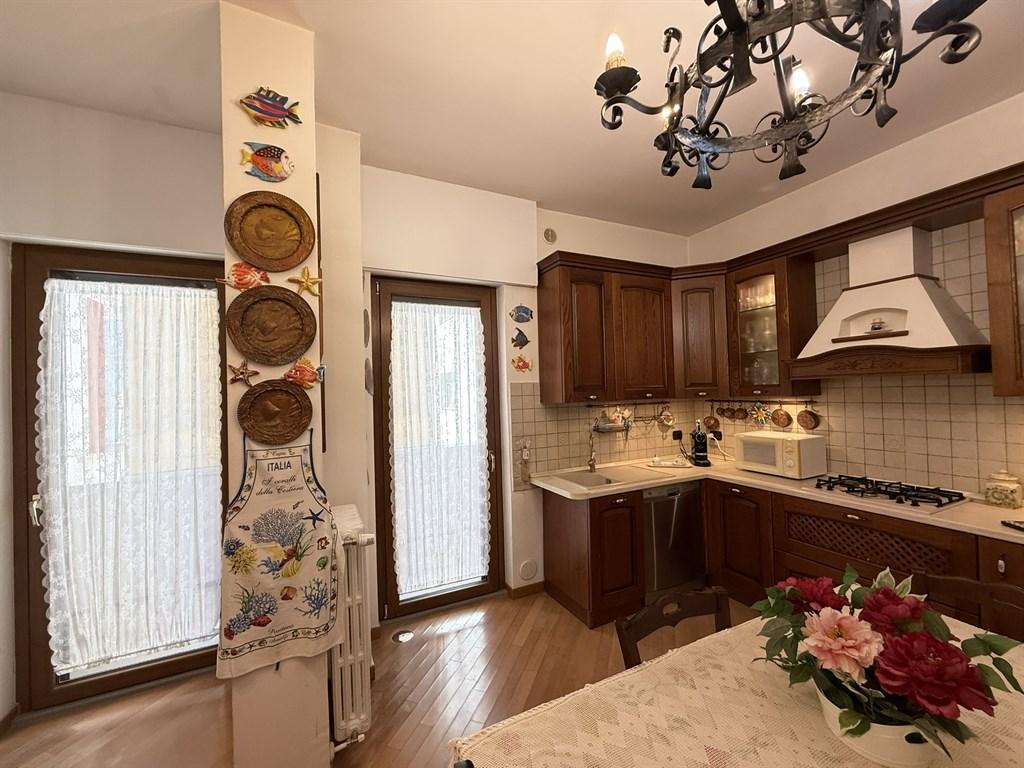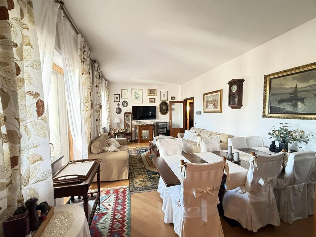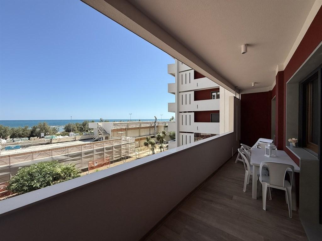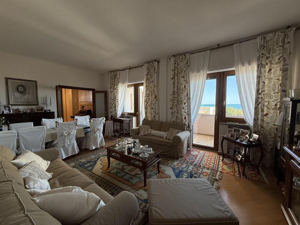 La soluzione è cosi dislocata: ingresso in ampio e comodo disimpegno con armadio a muro e libreria a parete, luminosissimo salone doppio con affaccio su balcone terrazzato vista mare, cucina abitabile con zona pranzo e zona lavanderia che hanno affaccio interno su balcone, camera da letto padronale con cabina armadio, cameretta e stanza attualmente adibita a studio, due bagni e ripostiglio attrezzato. L' immobile è finemente ristrutturato e grazie alla distribuzione degli ambienti è possibile godere dei confort che l'appartamento offre in ogni minimo dettaglio. Grazie ai suoi tre ampi balconi l'appartamento regala una splendida vista mare da più angolazioni, permettendo di ammirare la bellezza del paesaggio in ogni momento della giornata. Rifiniture interne di pregio: interni dello stabile ricoperti di boiserie in mogano, videocitofono, doppi ascensori, porta blindata, parquet in rovere, infissi in pvc con marcatura CE dotati di vasistas, zanzariere su tutti gli infissi "MV LINE", tapparelle elettriche in alluminio con telecomandi autonomi, tende da sole a caduta, porte in piuma di mogano con finiture in ottone, grigliato in legno laccato bianco a tutta lunghezza, condizionatori, impianto elettrico a norma, impianto di riscaldamento autonomo e impianto idraulico con caldaia di ultima generazione. Lo stabile è stato recentemente dotato di cappotto termico per un migliore isolamento e comfort abitativo. POSSIBILITA' ACQUISTO DI BOX AUTO DI MQ 20. CONSEGNA DELL'IMMOBILE : DICEMBRE 2026.