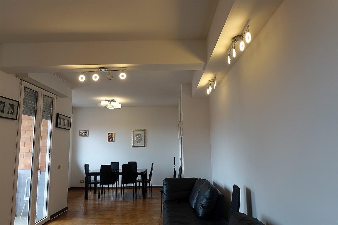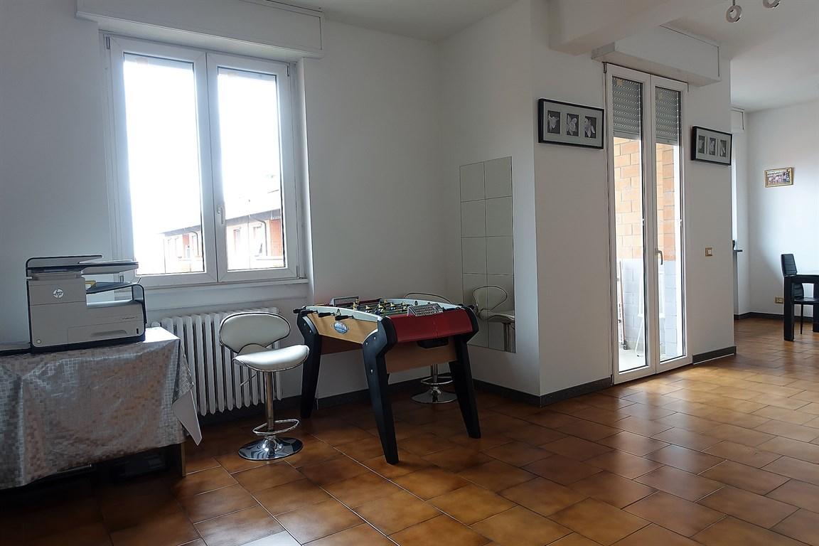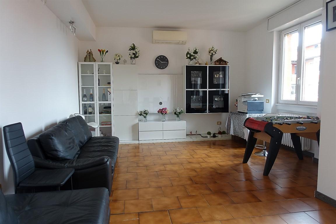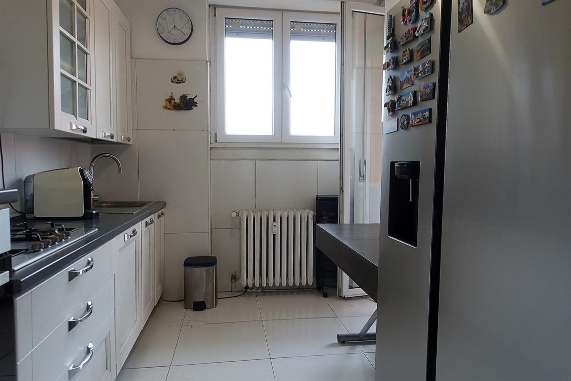 Ultimo piano panoramico a Monza, in via Zuccoli: immobile composto da soggiorno doppio con accesso al terrazzino, cucina semi abitabile con secondo balcone, 2 camere da letto oltre una camera/studio, doppi servizi entrambi finestrati, ripostiglio/cabina armadio finestrato.