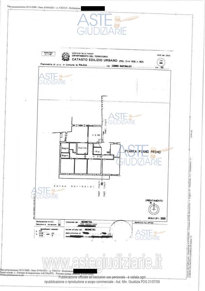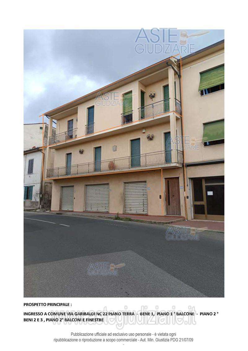 Forcoli: proponiamo asta di Lotto 3 - In Palaia, frazione Forcoli, Corso Garibaldi numero civico 22, piena proprietà di appartamento, costituente la porzione est del piano secondo del fabbricato, composto da ingresso, soggiorno, disimpegno dal quale si accede a due camere, corridoio, ripostiglio, cucina e stanza da pranzo con ripostiglio, altro ripostiglio dal quale si accede ad una camera e bagno senza finestra oltre a balcone sul fronte della pubblica via al quale si accede sia da una camera che dal soggiorno e piccolo balcone che attraverso una scala esterna dà accesso ad un vano di sgombero ad un livello intermedio sottostante.