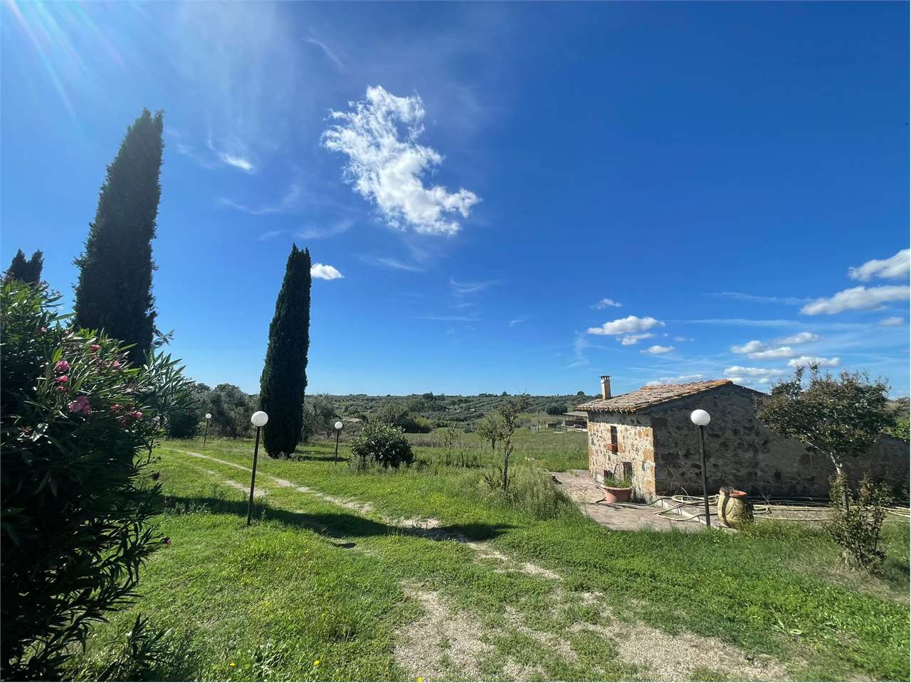 Villa unifamiliare su unico livello di 124 mq immersa nella tranquillità della Maremma Laziale, precisamente nella tranquilla zona di San Savino. Internamente è composta da ingresso, un ampio salone doppio con angolo cottura e camino, una camera padronale che dispone di un bagno privato, altre due camere matrimoniali e un secondo bagno completano la zona notte.