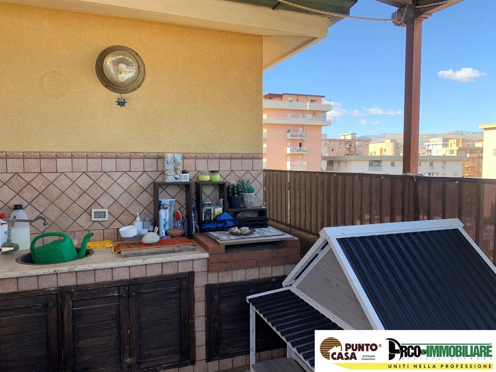 Caratteristiche distintive: • Soggiorno triplo con vetrate panoramiche: un ambiente scenografico, perfetto per vivere e ricevere • Due terrazzi vivibili, di cui uno con barbecue in muratura, ideali per momenti di relax o convivialità all’aperto • Balcone perimetrale che abbraccia tutta la casa, per vivere l’esterno in ogni momento della giornata • Luce naturale in ogni ambiente, grazie alla tripla esposizione e alla posizione elevata • Privacy assoluta: ultimo piano servito da ascensore fino al quinto piano, con accesso esclusivo tramite una sola rampa di scale Distribuzione interna: • Cucina semi abitabile funzionale adiacente al soggiorno • Due bagni comodi e ben distribuiti • Tre camere da letto (di cui una attualmente adibita a cabina armadio) • Ampio ripostiglio e lavanderia Questa è una soluzione rara sul mercato, pensata per chi cerca comfort, vista, spazi generosi e atmosfera, il tutto in una posizione strategica e ben servita. ?? Disponibile da novembre – Solo referenziati.
