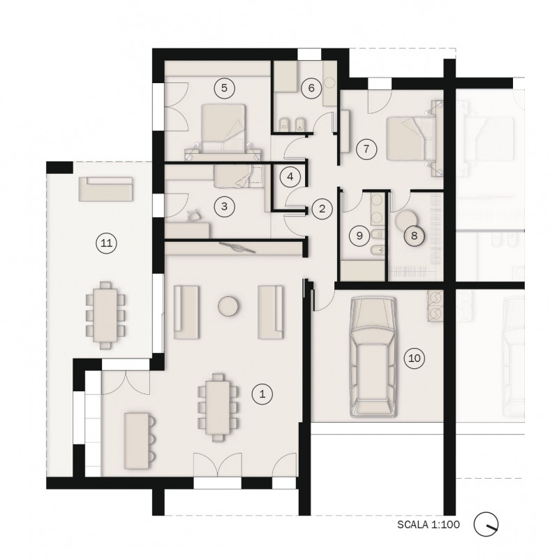 Situata ai piedi dei Colli Euganei, questa abitazione offre non solo una casa, ma uno stile di vita esclusivo e senza compromessi. La zona giorno di ben 60 mq, illuminata da un’elegante vetrata, si affaccia su un portico coperto e uno scoperto privato di 280 mq, uno spazio perfetto per godere della natura in totale privacy. La grande metratura esterna offre la possibilità di realizzare una piscina privata, regalando un ulteriore tocco di esclusività e benessere alla tua casa. La zona notte è studiata per garantire il massimo comfort: - una camera matrimoniale di 15 mq con bagno privato e cabina armadio, per momenti di puro relax. - una seconda camera matrimoniale e una camera singola, ideali per accogliere i tuoi cari o creare uno spazio dedicato ai tuoi hobby. - un secondo bagno finestrato e un pratico ripostiglio completano la zona notte. Il garage doppio motorizzato di 25 mq, comunicante con l’abitazione, e due posti auto interni assicurano comodità in ogni momento della giornata. Questa bifamiliare non è solo bella, ma anche estremamente efficiente: Classe energetica A4, per un consumo minimo e un impatto ambientale ridotto. Impianto fotovoltaico da 6 kW, che alimenta il riscaldamento a pavimento e il raffrescamento con split, per il massimo del comfort in ogni stagione. Sistema di ventilazione meccanica controllata (VMC), per una qualità dell’aria eccellente in tutta la casa, riducendo l’umidità e garantendo un ambiente sempre sano. Materiali di alta qualità e tecnologie innovative, che garantiscono isolamento termico e acustico, rendendo la tua casa un’oasi di pace. La posizione perfetta per la tua vita quotidiana A due passi dalla via Euganea, che collega Teolo e Selvazzano, e vicino agli svincoli autostradali, questa casa è comoda a tutti i principali servizi: scuole, negozi e attività del centro di San Biagio e Teolo sono a portata di mano. Perché aspettare? Opportunità come questa sono rare: una casa su unico livello, con spazi ampi, tecnologie all’avanguardia e una posizione così strategica non si trova tutti i giorni. ....