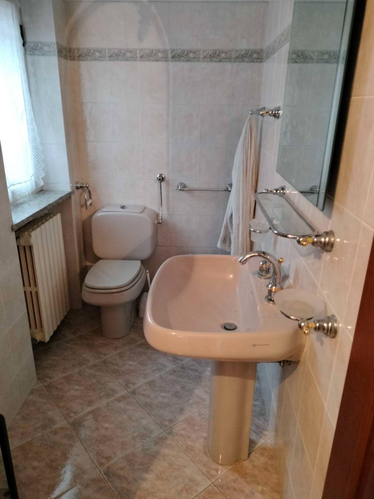 Salendo al primo piano da una bella scalinata rivestita in granito, due camere matrimoniali, un servizio, un balcone ed uno splendido terrazzo. All'esterno della casa, transitando in cortile, abbiamo un comodissimo box auto..