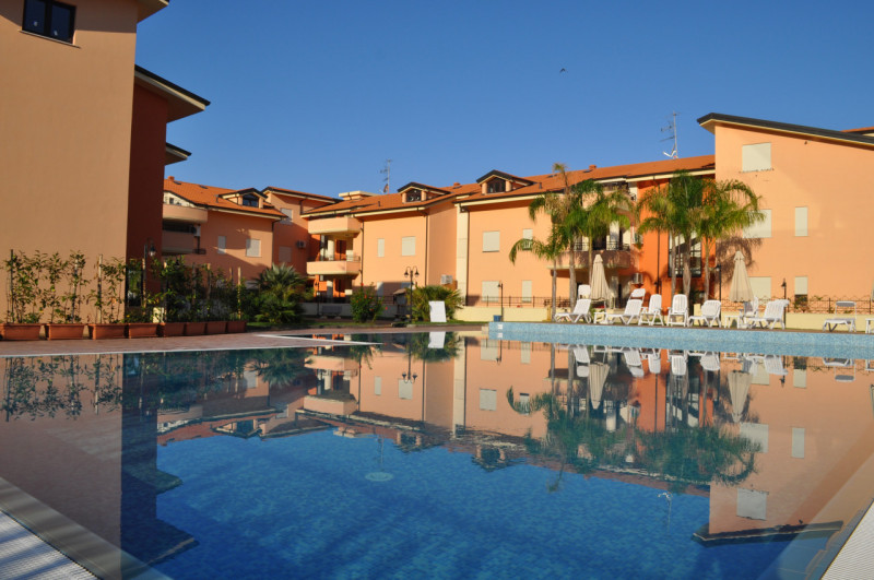 L’open-space è dotato di sfogo sulla terrazza, la quale offre una visuale sulla piscina. Il disimpegno, da cui si accede sempre mediante la zona giorno, riunisce la zona notte. Quest’ultima è fornita di due camere da letto, una matrimoniale ed una doppia, luogo perfetto per riposare e ricaricarsi dopo una giornata al sole. I due bagni presenti, quello padronale dotato di vasca mentre quello di servizio dotato di doccia, offrono funzionalità e comfort. Completa la soluzione il ripostiglio dove è possibile riporre tutti quegli oggetti che si vogliono nascondere alla vista. Il Residence di cui fa parte l’immobile dispone di piscina privata condominiale con sdraio, ombrelloni a servizio dei residenti. Nei periodi estivi, quando le spiagge sono sovraffollate, avere una piscina proprio sotto casa dove prendere il sole e fare una nuotata è un vero e proprio vantaggio. Il Residence possiede un parco condominiale alberato provvisto di panchine per la zona relax. L’appartamento è la scelta ideale per chi non vuole rinunciare alla comodità ma allo stesso tempo essere a due passi dal mare e dal Centro di Pizzo. --- annuncio pubblicato con GESTIONALEIMMOBILIARE.it.