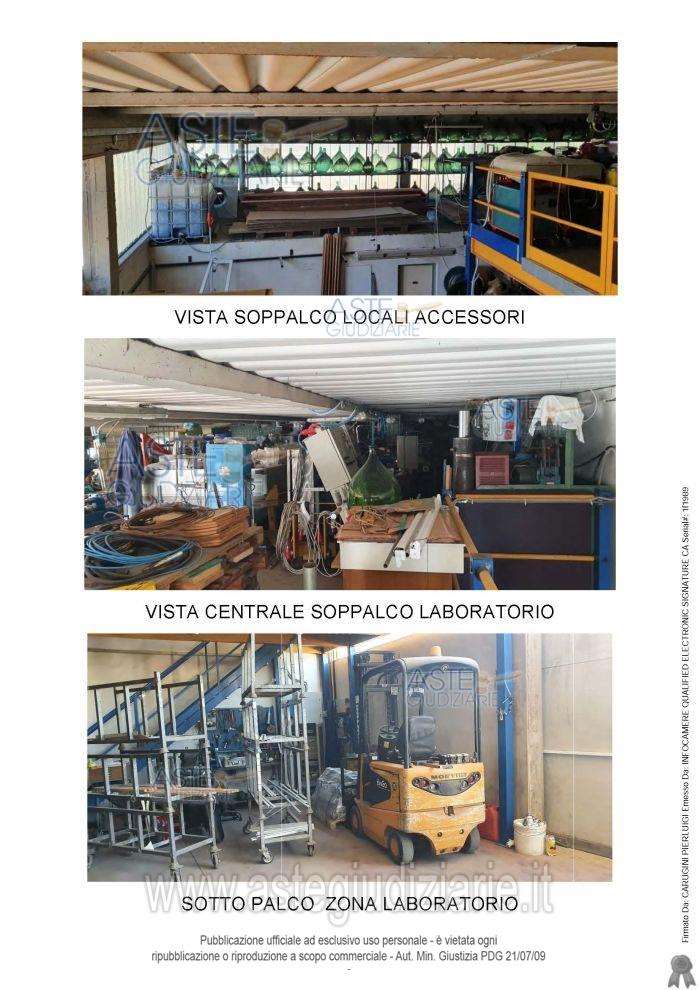 Il bene è composto da un locale laboratorio, un doppio spogliatoio con due wc e doccia, un locale centrale ad uso refettorio e due ingressi con accesso diretto dall'esterno tramite porta pedonale. E' compresa una corte urbana di pertinenza esclusiva di lunghezza pari alla lunghezza della porzione di fabbricato (lato ovest) e larghezza di ml 5 anche sul lato posteriore (lato nord). CLASSE ENERGETICA: G.