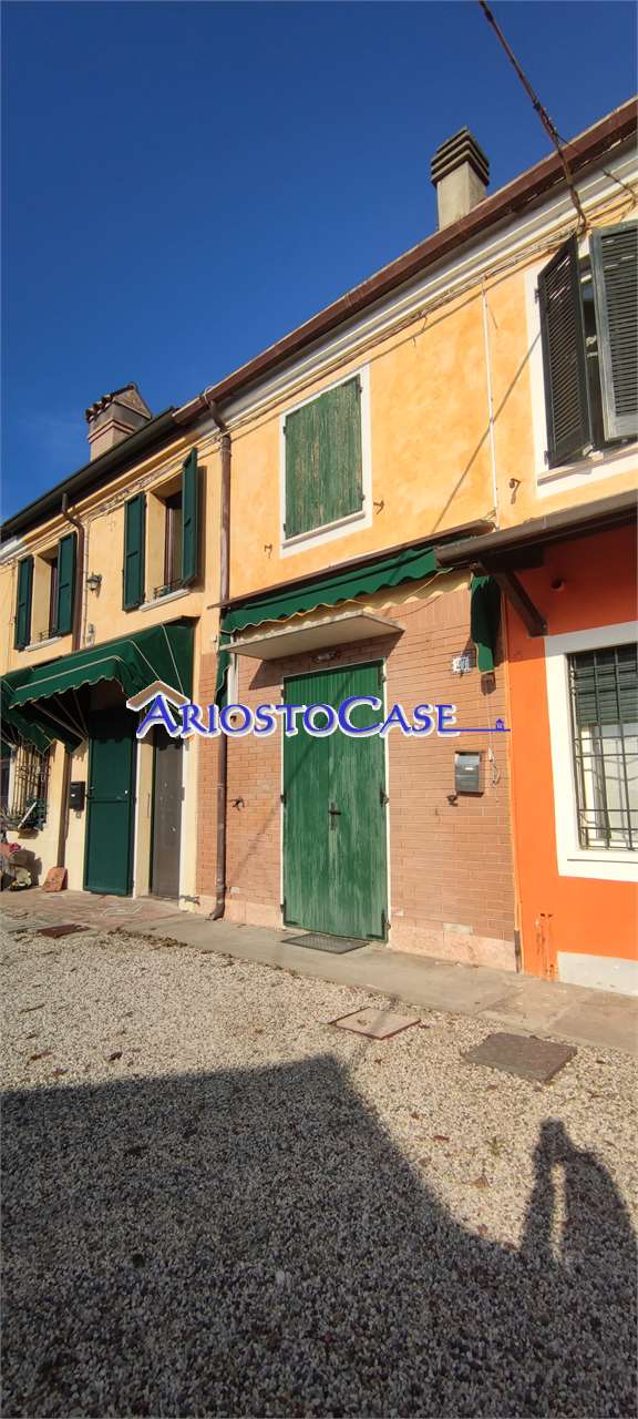 Deliziosa Casa accostata nel centro di Sabbioncello San Vittore, primissime vicinanze di Copparo, composta al piano terra da sala con aria condizionata, cucina con accesso a cortile sul retro privato recintabile per eventuali animali domestici cui insistono due cantina, bagno da riammodernare con caldaia recente, al primo piano camera da letto matrimoniale principale e vano cui ricavare seconda camera o secondo bagno. Info e visite 3397815383 CLASSE ENERGETICA: In fase di valutazione.