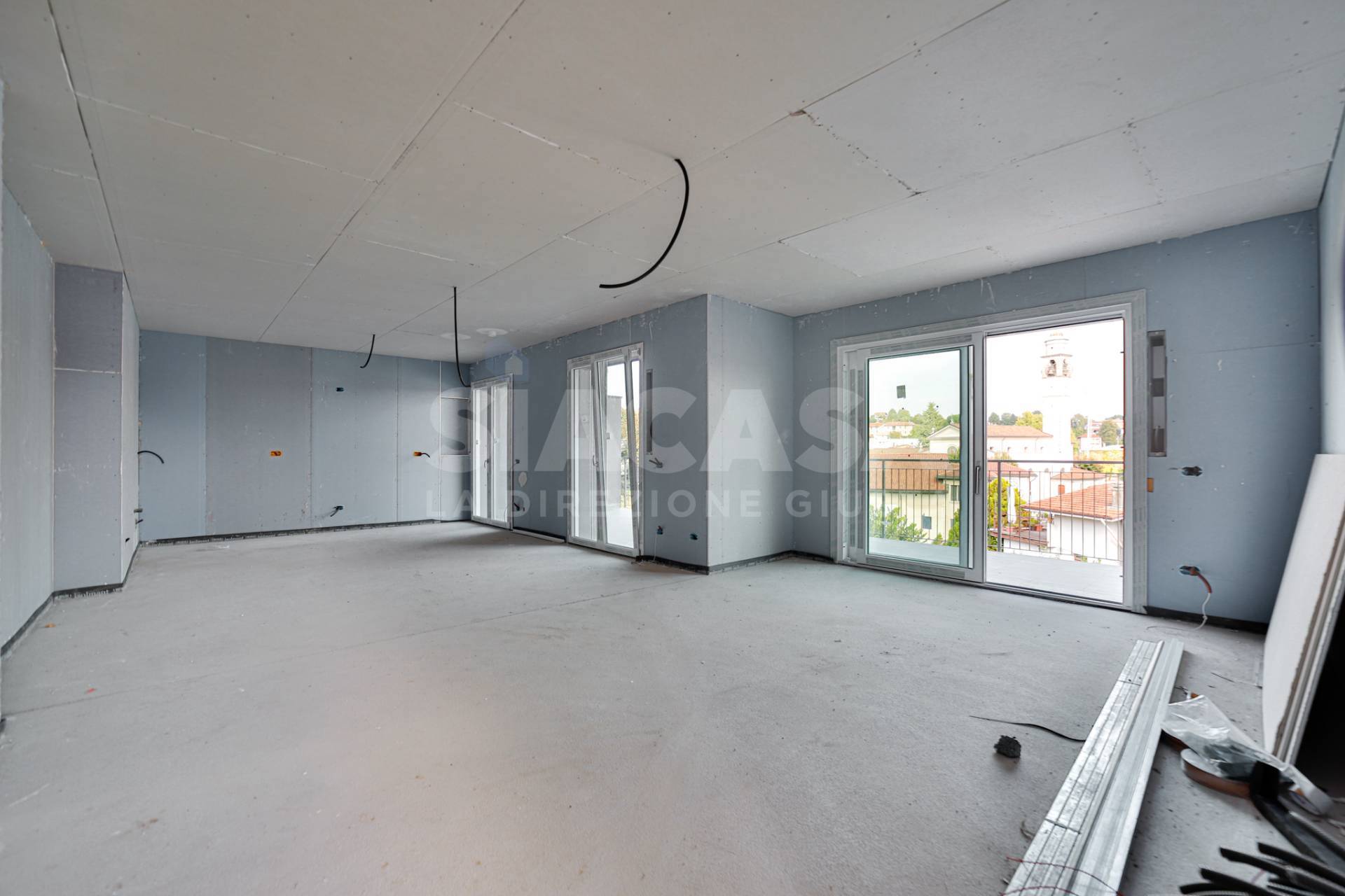 Nuova costruzione ? Appartamento panoramico in mini palazzina da 6 unità In posizione centrale e rialzata, con vista panoramica e ottima esposizione, proponiamo in pronta consegna un esclusivo appartamento al primo e ultimo piano di una raffinata mini palazzina di sole sei unità abitative. Libero su tre lati, l?immobile si distingue per l?ampiezza degli spazi e la luminosità degli ambienti, con un grande terrazzo che abbraccia due lati della zona giorno, creando una continuità armoniosa tra interno ed esterno per un totale di 45,60 m² di terrazzi. Dal disimpegno si accede alla zona notte, composta da: camera matrimoniale con balcone privato, due bagni finestrati, una cameretta con balcone, una seconda cameretta ideale anche come studio. La palazzina in classe energetica A4 è realizzata con tecnologie costruttive di ultima generazione, garantendo il massimo comfort abitativo e un?elevata efficienza energetica: Pompa di calore individuale, Impianto fotovoltaico privato da 3,5 kW, Cappotto esterno con tavolato ad alta densità, Isolamenti acustici e termici di alto livello, Predisposizione per impianto di raffrescamento idronico, Predisposizione per impianto di VMC canalizzata individuale, Predisposizione antifurto volumetrico e perimetrale. Gli interni sono completamente personalizzabili: il cliente potrà scegliere finiture e materiali da capitolato o extra capitolato, con l?assistenza diretta dello studio di architettura progettista e proprietario dell?immobile, per creare un?abitazione su misura. Completa la proprietà una comoda autorimessa di 52 m², dotata di portone sezionale motorizzato e collegamento elettrico diretto con l?appartamento.