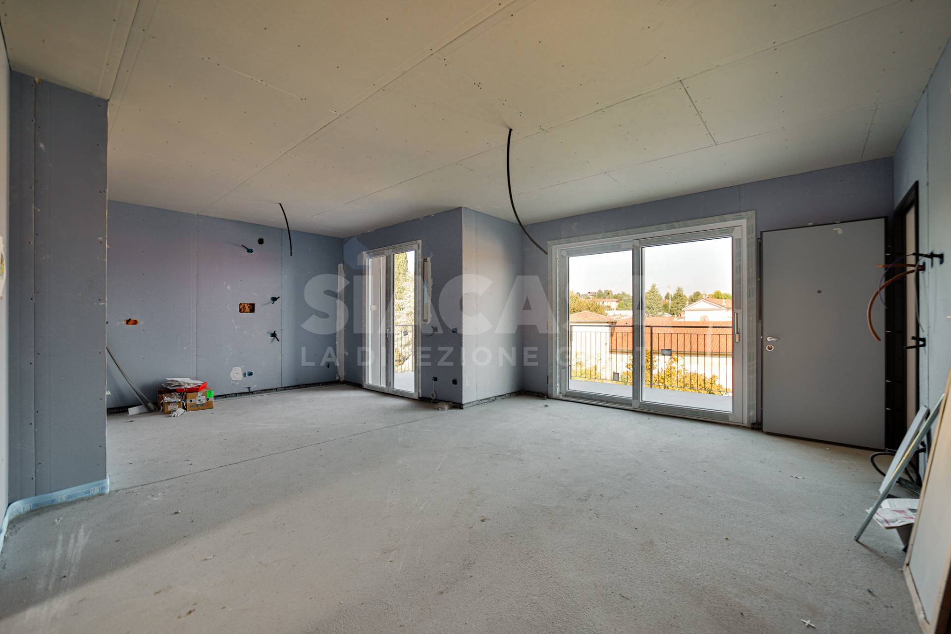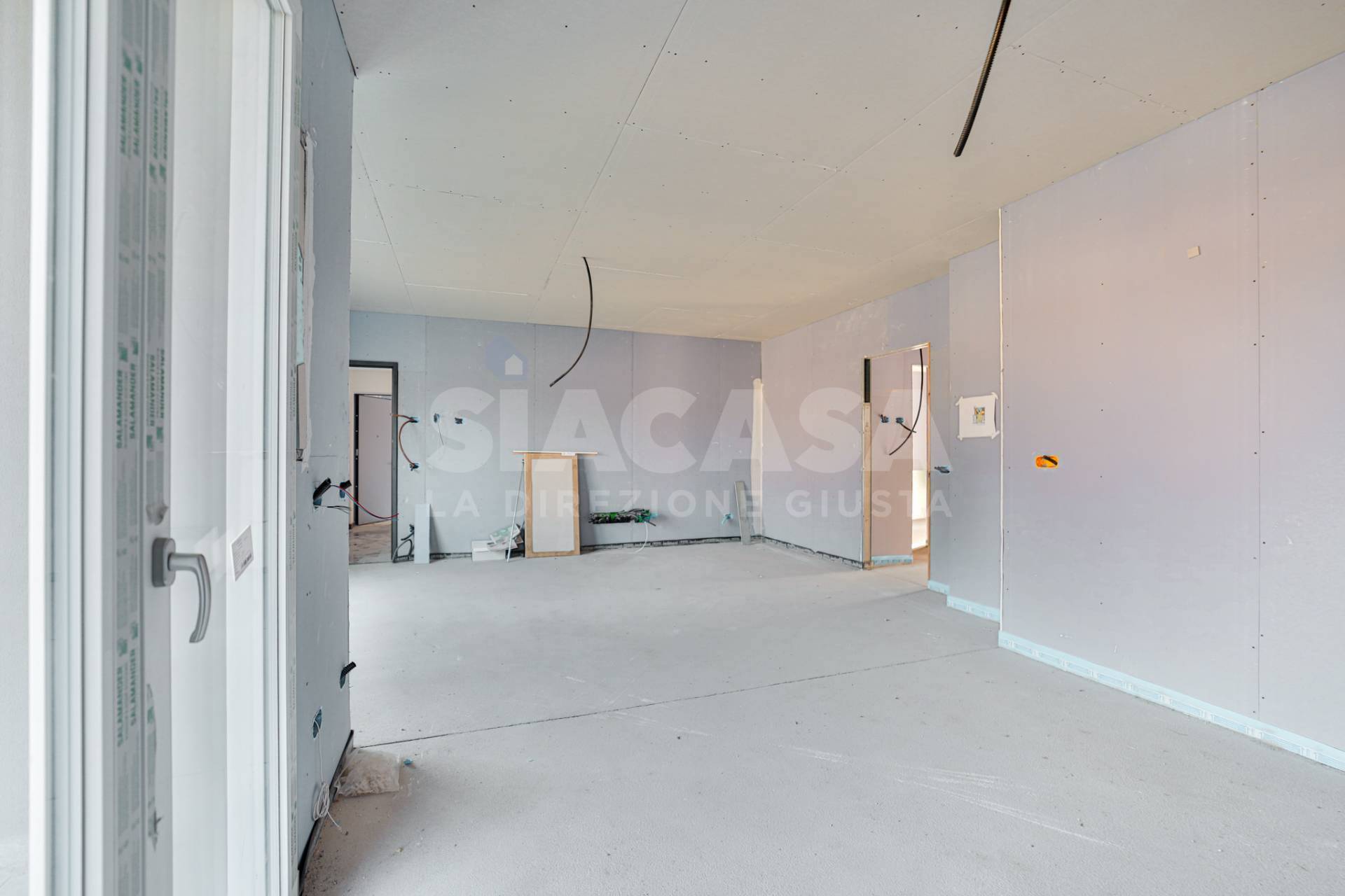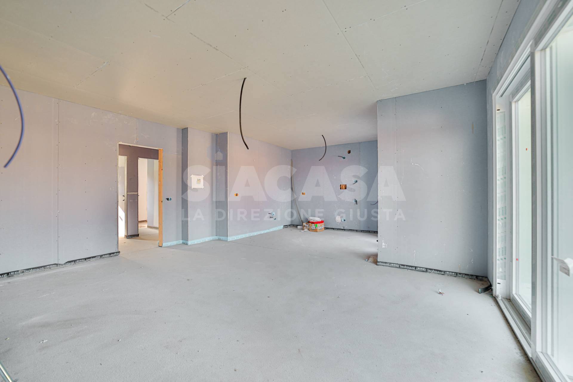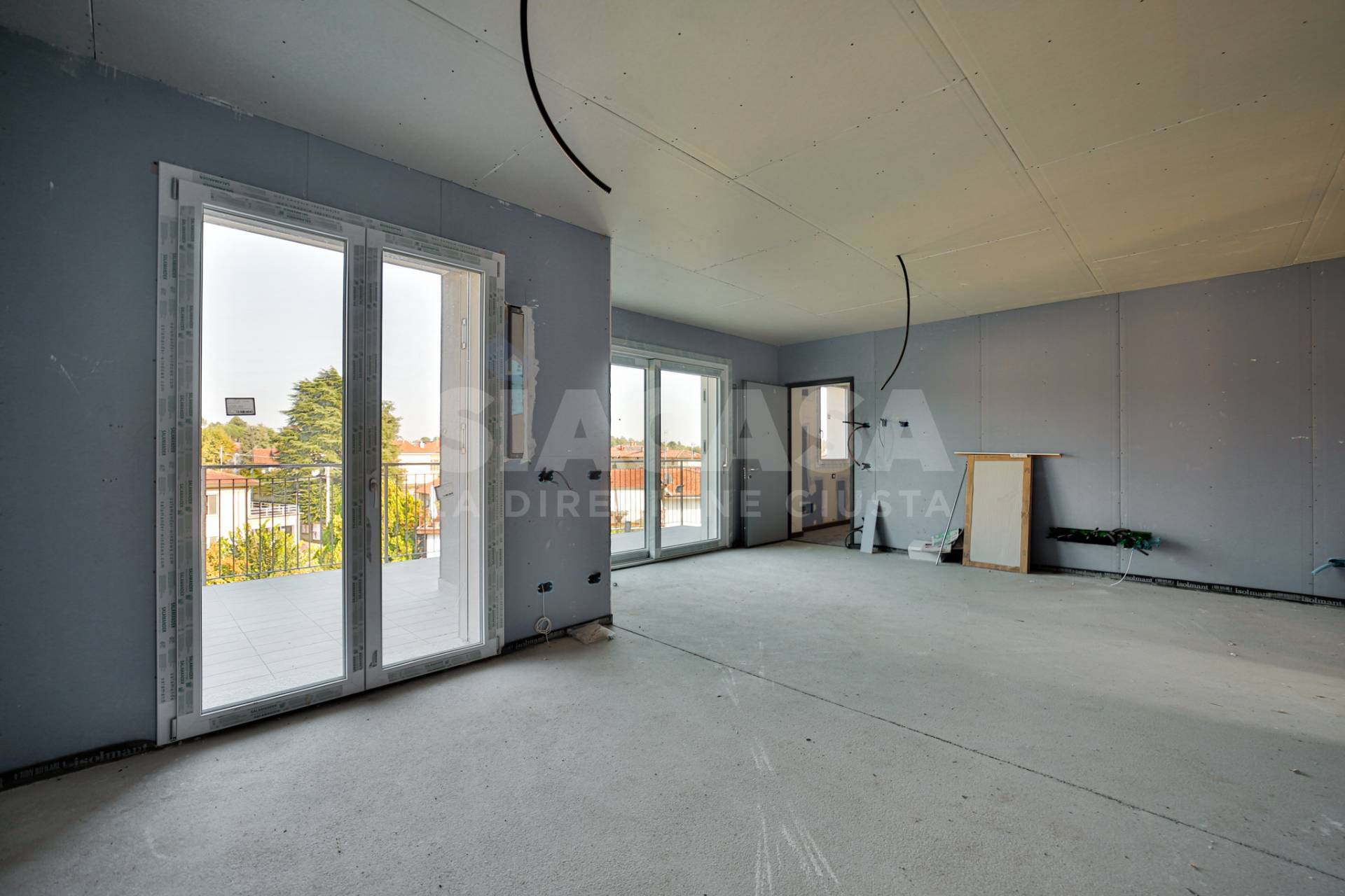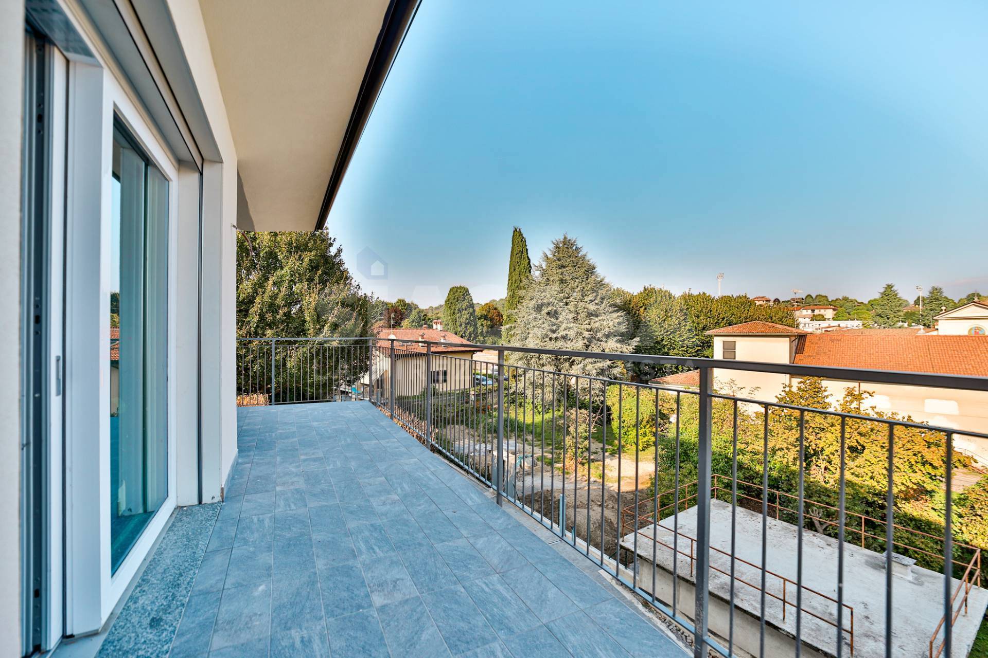 Nuova costruzione ? Appartamento trilocale con terrazzo panoramico in mini palazzina da 6 unità In posizione centrale e rialzata, con vista panoramica e contesto esclusivo di sole sei unità abitative, proponiamo in pronta consegna un elegante appartamento trilocale posto al primo e ultimo piano, libero su tre lati e con esposizione Est ? Nord ? Ovest. L?ingresso apre su un ampio soggiorno con cucina a vista, facilmente separabile per ottenere una cucina abitabile. La zona giorno si affaccia su un terrazzo soleggiato, accessibile da una porta-finestra e da una grande vetrata scorrevole, che ampliano la percezione di spazio e luce naturale. Dal disimpegno si accede alla zona notte, composta da: due camere matrimoniali, di cui una con balcone privato, due bagni finestrati, curati nei dettagli e funzionali. La palazzina in classe energetica A4 è realizzata con tecnologie costruttive di ultima generazione, pensate per garantire comfort, risparmio energetico e silenziosità: Pompa di calore individuale, Impianto fotovoltaico privato da 3,5 kW, Cappotto esterno con tavolato ad alta densità, Isolamento acustico e termico di alto livello, Predisposizione per raffrescamento idronico, Predisposizione per VMC canalizzata individuale, Predisposizione antifurto volumetrico e perimetrale. Gli interni sono personalizzabili secondo le scelte del cliente, con possibilità di selezionare materiali e finiture da capitolato o extra capitolato, assistiti direttamente dallo studio di architettura proprietario e progettista dell?immobile, per un risultato completamente su misura. Completa la proprietà un box doppio di 38 m², dotato di portone sezionale motorizzato e collegamento elettrico diretto con l?appartamento.