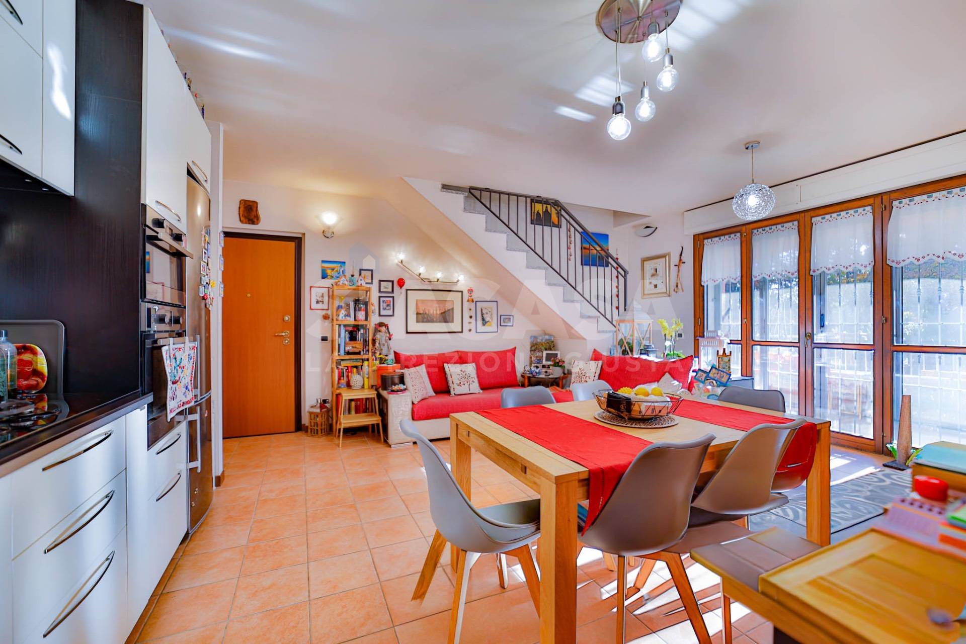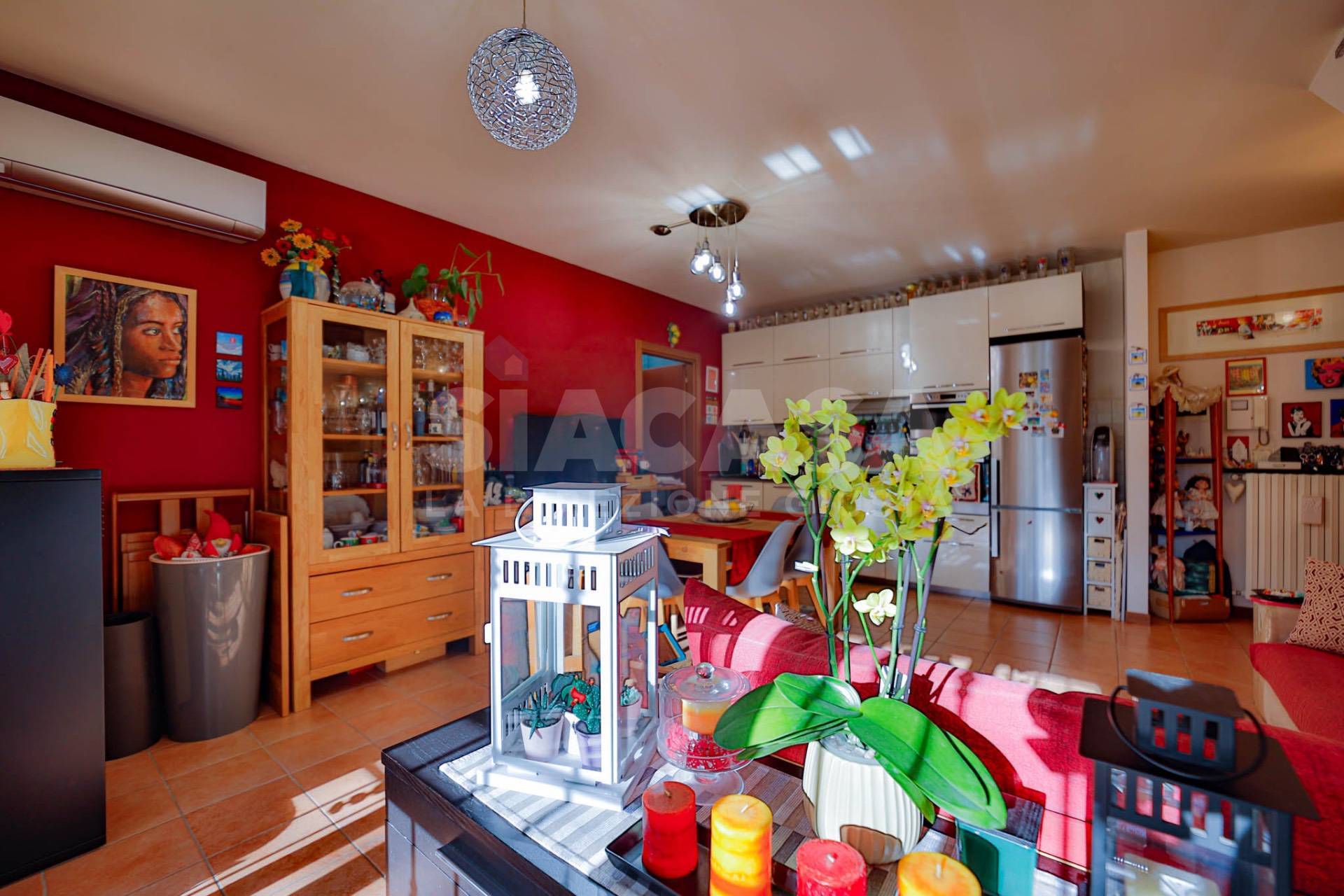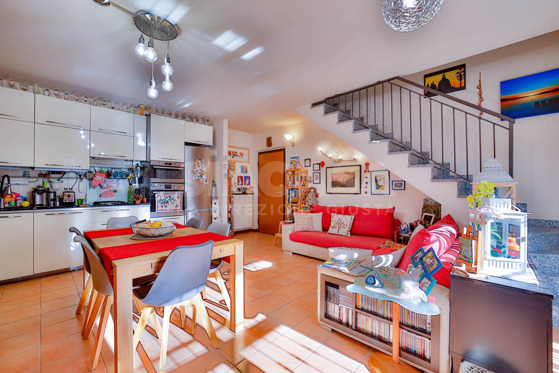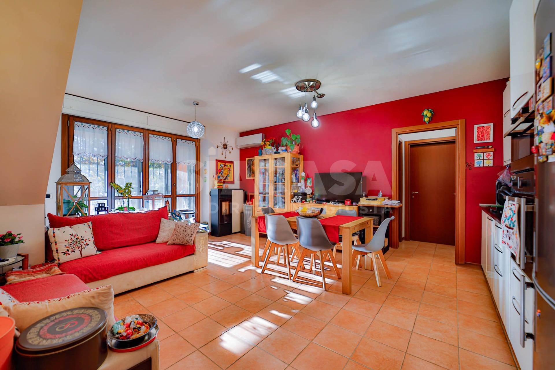 In una tranquilla zona residenziale (in via a fondo chiuso), all?interno di una palazzina del 2009 composta da sole 8 unità abitative (4 al piano terra con giardino e taverna e 4 al primo piano con terrazzo e mansarda), nasce questa splendida abitazione, rifinita ed abitata dal 2014, che unisce comfort contemporaneo e calore domestico in ogni dettaglio. Situato al primo piano, l?appartamento si sviluppa su 62,00mq e accoglie con un luminoso soggiorno con cucina a vista, impreziosito da una grande portafinestra quadrupla che si apre sul terrazzo di 28,00mq, esposto a sud, ideale per stare all?aperto o per rilassarsi al sole. Attraverso una scala in muratura lineare, si accede al piano mansardato di 62,00mq, un ampio open space dal fascino accogliente, predisposto per essere diviso in due camere da letto e completo di un secondo bagno. Questo livello dispone anche di un secondo accesso indipendente dal vano scala condominiale, con porta blindata, offrendo così flessibilità d?uso e privacy. Completa la proprietà un box doppio in larghezza di 5,10 x 5,20 metri, perfetto per due auto e spazio di deposito. La casa è dotata di: · Climatizzazione con pompa di calore · Stufa a pellet canalizzata · Predisposizione per impianto antifurto · Infissi in legno con doppi vetri, zanzariere e inferiate di sicurezza · Pavimentazione in ceramica nella zona giorno e parquet nella camera da letto · Velux motorizzati con tende oscuranti · Tapparelle · Esposizione sud/ovest, che regala luce naturale e tramonti suggestivi Un?abitazione dal carattere caldo e raffinato, pensata per chi desidera vivere in spazi luminosi, ben distribuiti e ricchi di comfort. Una casa calda che sa accogliere ogni giorno.