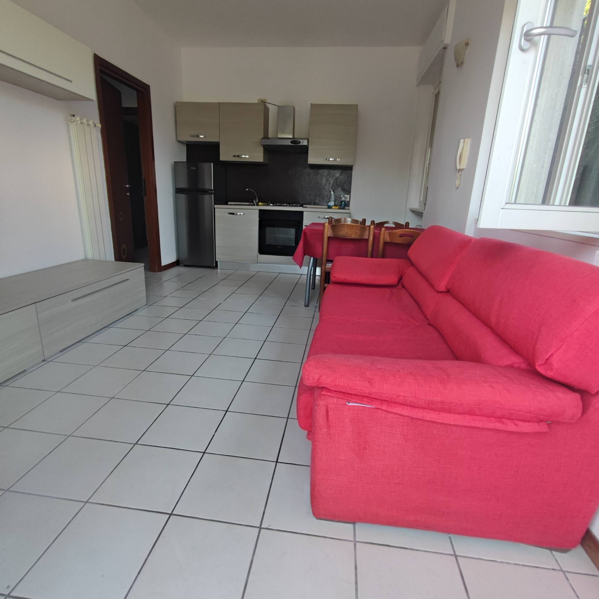 In piccola contesto residenziale piccolo bilocale con balcone al primo piano, semiarredato e termoautonomo, 45 mq, composto da: ingresso, soggiorno con cucina a vista, camera, bagno con doccia. Posto auto compreso. Cauzione pari a due mensilità.