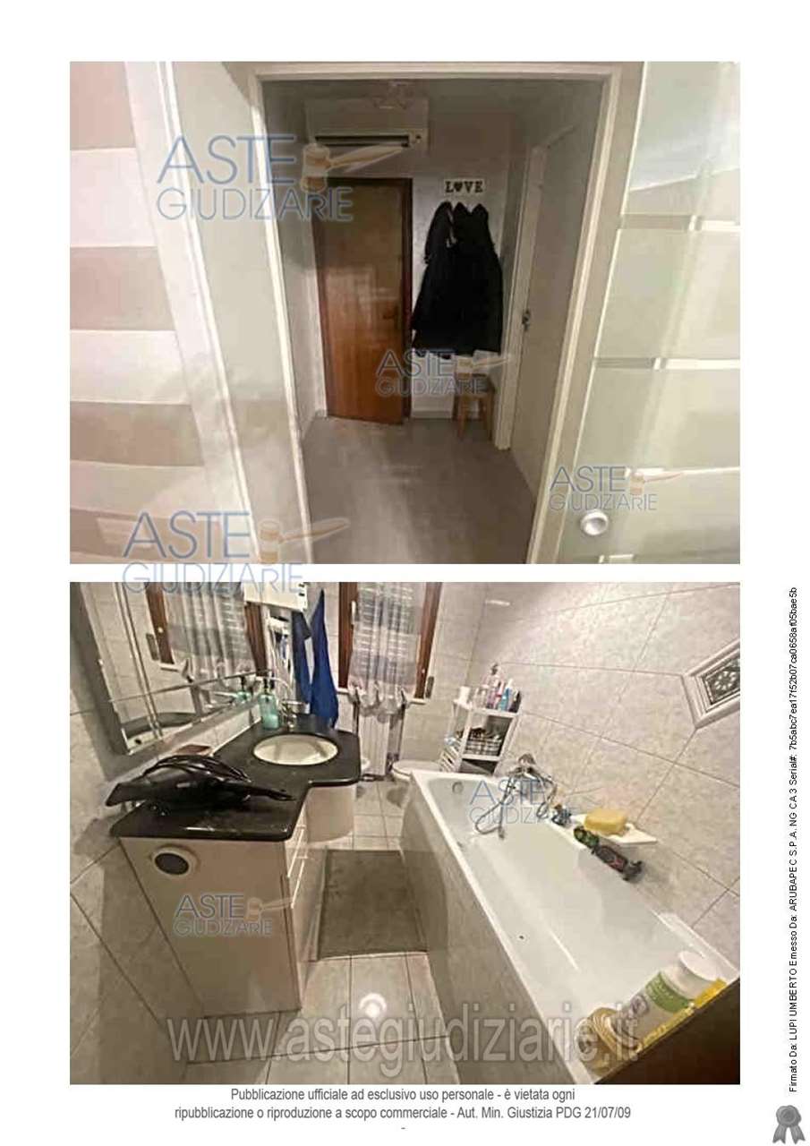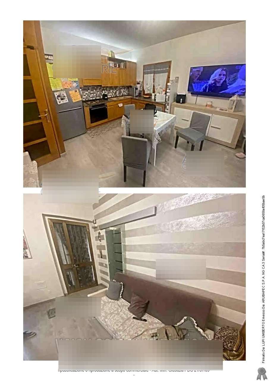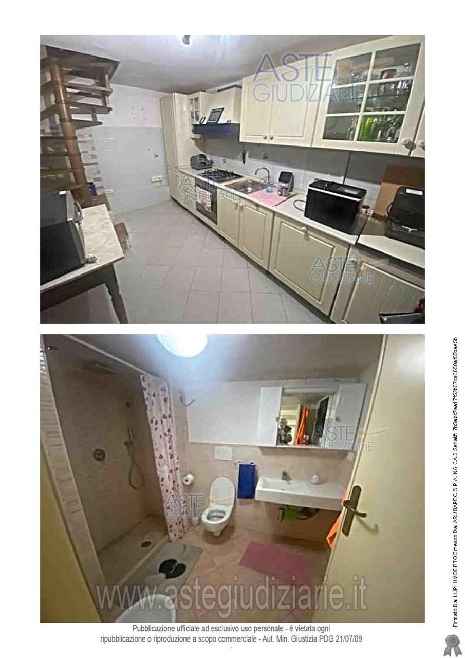 L'appartamento in oggetto è composto al piano primo da ingresso-soggiorno-cucina, due camere di cui una con cabina armadio, disimpegno, bagno, terrazzo e scala esterna, inoltre sono annessi all'unità in pertinenza esclusiva al piano terra due locali di sgombero, con accesso sia dall'appartamento con scala interna di pertinenza esclusiva, sia direttamente dall'esterno, un bagno, un locale caldaia e un'autorimessa quest'ultimi due con accesso solo dall'esterno.