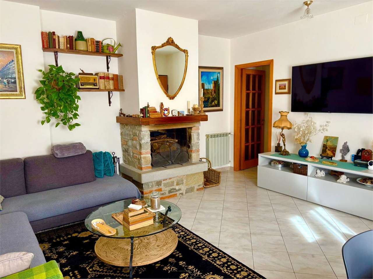 L'immobile è mantenuto in perfetto stato, si sviluppa tutto in un livello ed è composto da ingresso, ampio e luminoso soggiorno con camino, cucinotto, disimpegno, tre camere, due bagni e un ampio garage al piano seminterrato.