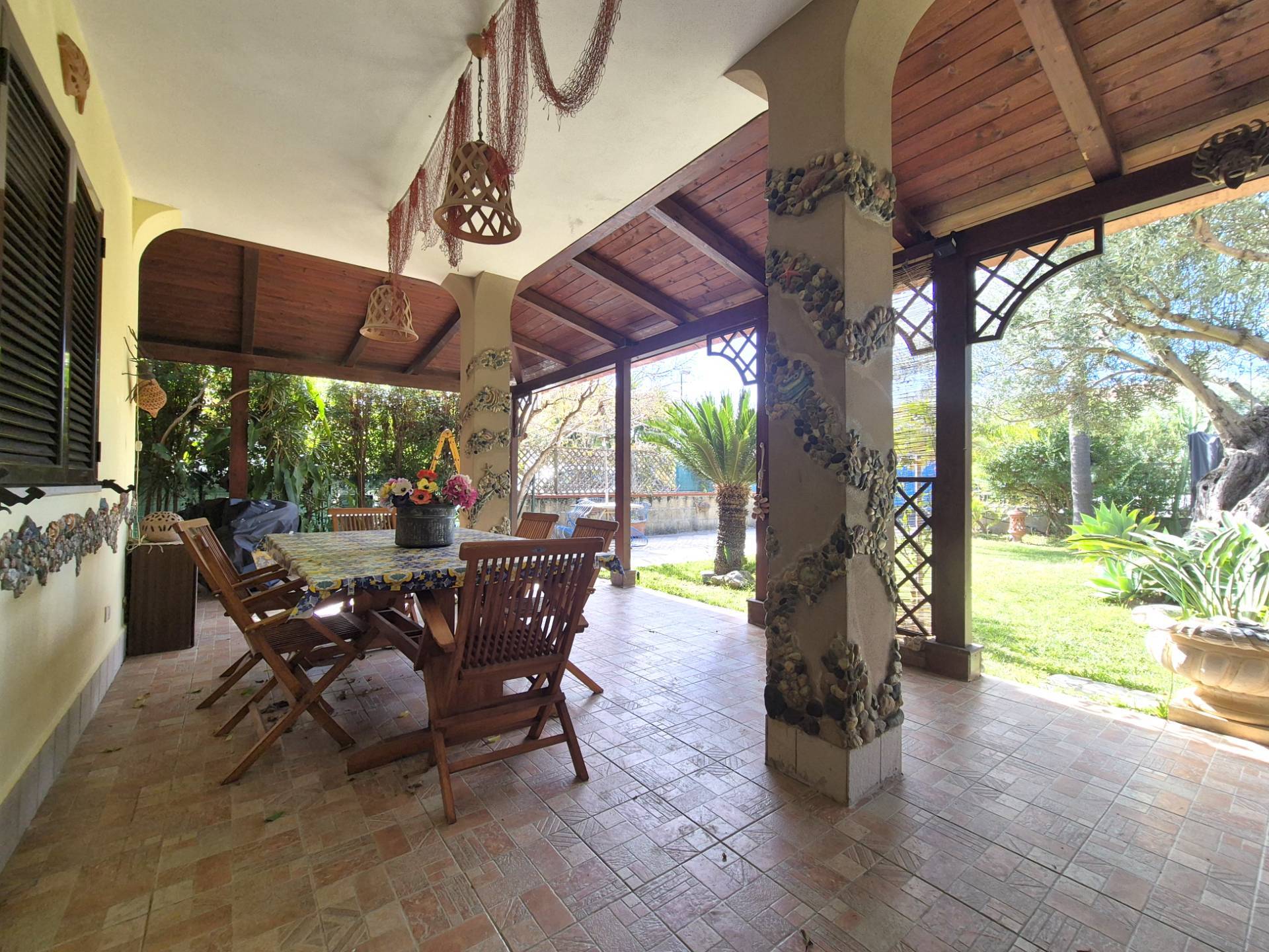 A Roccelletta di Borgia, in tranquilla zona residenziale nelle vicinanze della facoltà di Farmacia, a soli 500 metri dal mare, elegante villa singola ben arredata, posta al piano terra e disposta su due livelli, composta da: ingresso su ampio e luminoso soggiorno living, cucinotto, camera da letto e bagno con doccia al piano terra; al primo piano si compone da due camere da letto e bagno con vasca.