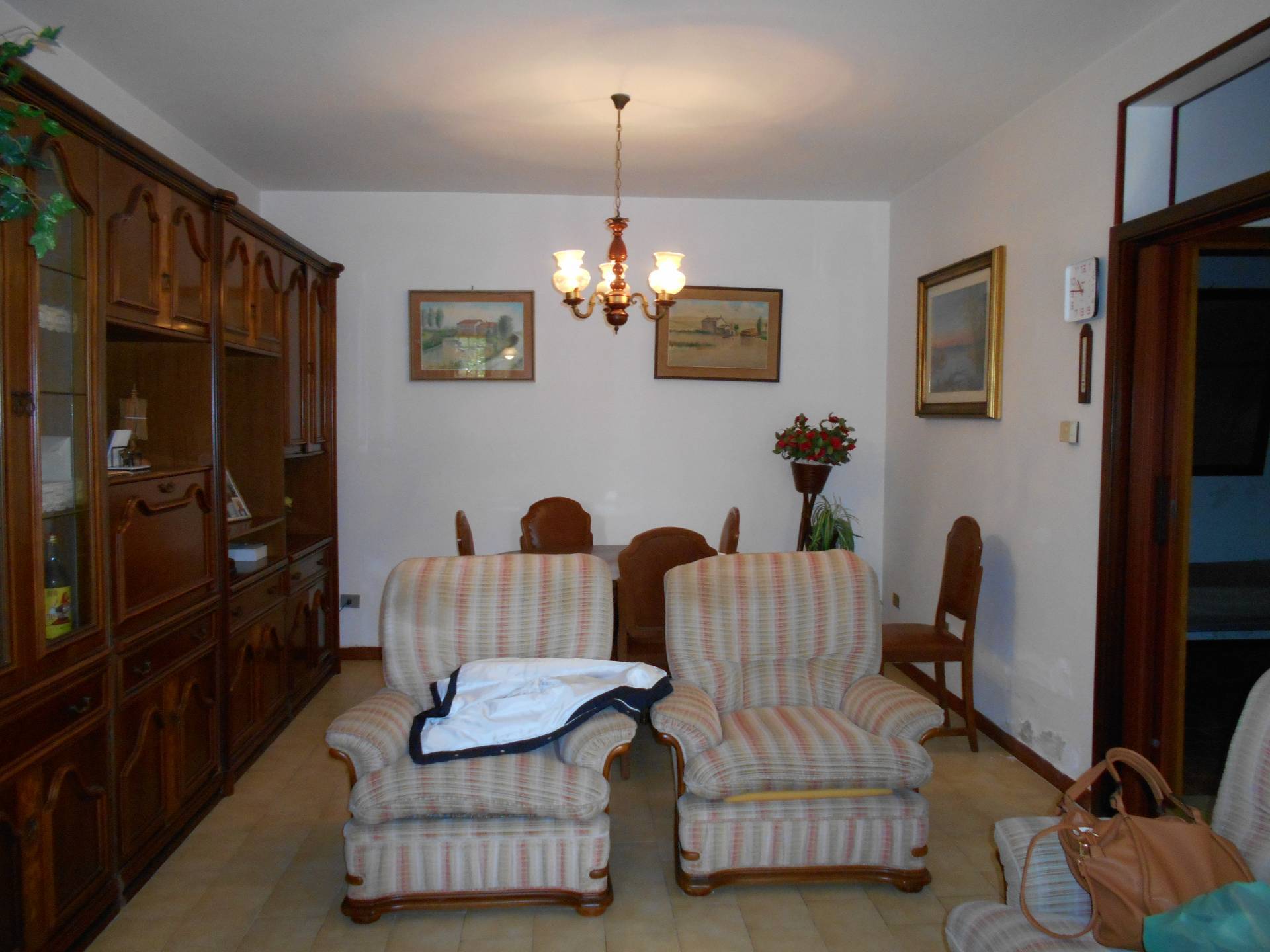 ), bagno con vasca, ripostiglio, lavanderia esterna in corte privata ad uso giardino. L'appartamento e' dotato di riscaldamento centralizzato a gas, non dista tanto dal centro del paese, comodo a servizi pubblici, negozi, uffici.